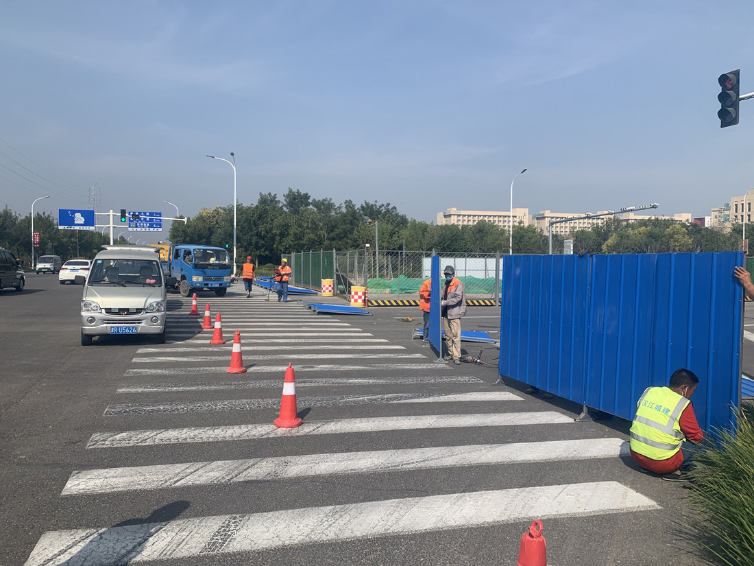 9月27日,根據(jù)濱海新區(qū)疫情防控規(guī)劃,濱海新區(qū)被劃定為高中風(fēng)險區(qū)及靜態(tài)管理區(qū)。因漢江城建第一分公司神舟大道項目位于封控管理的關(guān)鍵位置,面對嚴(yán)峻的疫情防控形勢,9月27日凌晨五點,天津市濱海高新技術(shù)產(chǎn)業(yè)開發(fā)區(qū)向神舟大道項目發(fā)出緊急建設(shè)隔離圍擋援建需求。