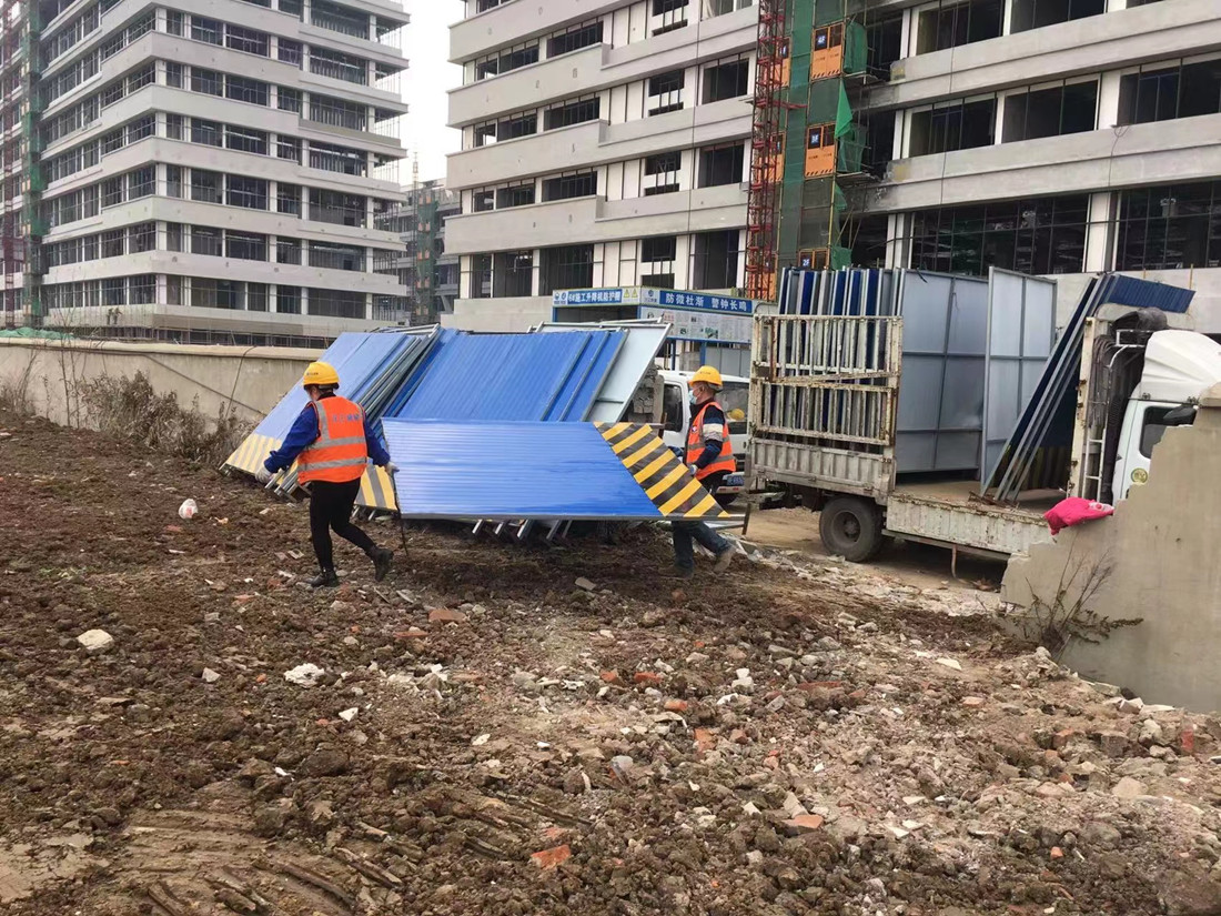 12月10日夜間,因大風(fēng)原因,公司在建項目中,多處施工圍擋出現(xiàn)了大面積傾倒的現(xiàn)象。