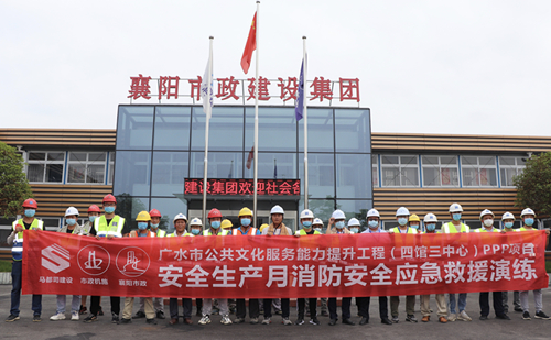 廣水公共文化服務(wù)能力提升工程“四館三中心”PPP項目由市政集團(tuán)及武漢市政工程機(jī)械化施工公司承建,項目建設(shè)內(nèi)容包括:科技館、文化館、圖書館、博物館、體育中心、學(xué)術(shù)報告中心、廣電傳媒中心。6月15日,市政集團(tuán)廣水公共文化服務(wù)能力提升工程(四館三中心)PPP項目舉行了消防安全應(yīng)急救援演練活動,襄陽市政聯(lián)合武漢市政全體項目部人員參加了演練活動。