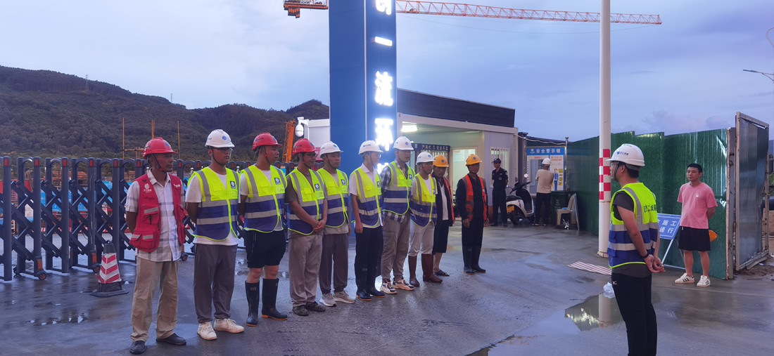 項(xiàng)目組織管理人員進(jìn)行防汛防臺巡檢