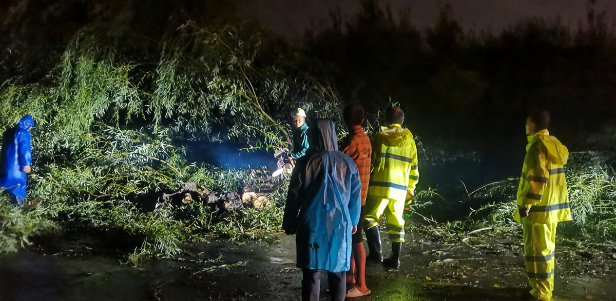 在襄城區(qū)濱江大道排澇現(xiàn)場(chǎng),黨員沖鋒在前的身影映入眼簾,他們徒手掀開(kāi)下水井蓋,清理淤泥雜物,齊力推行無(wú)法行駛車輛。一旁的行道樹(shù)刮倒橫在路中,擋住了來(lái)往車輛行駛,他們站在齊膝的積水中指揮交通,砍伐阻攔在路中的枝干,清理散落的樹(shù)枝。截止凌晨一點(diǎn),歷時(shí)3小時(shí),濱江大道積水已局部排出,主干道恢復(fù)交通。