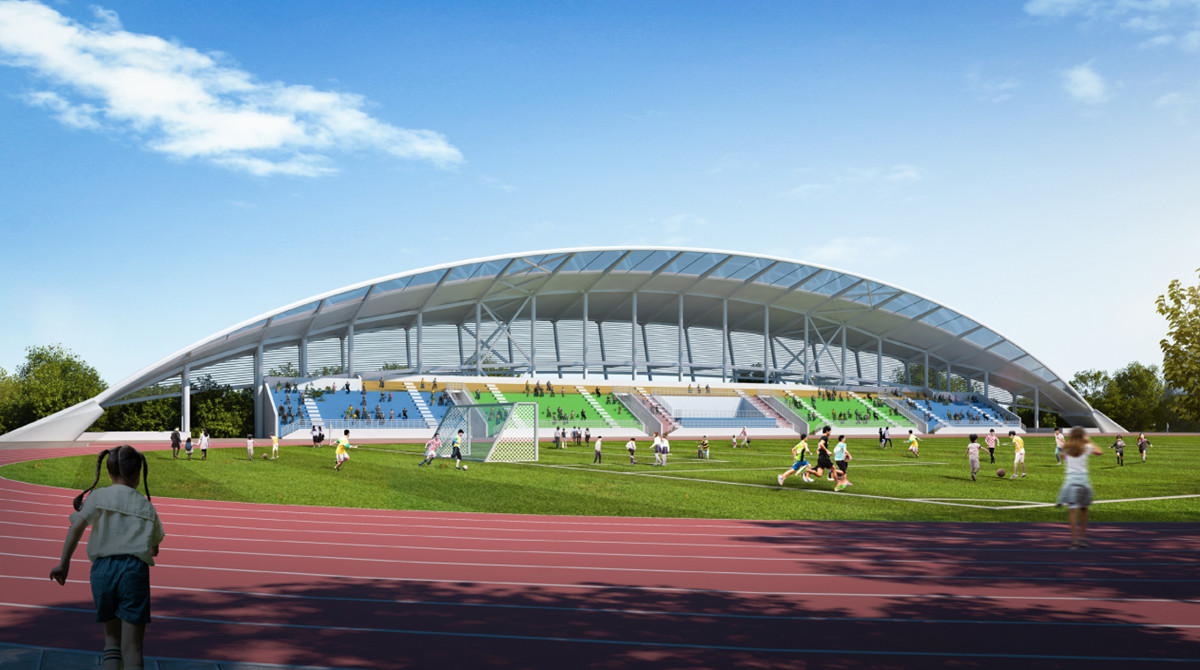 湖北文理學(xué)院理工學(xué)院修繕二期設(shè)計(jì)施工總承包建設(shè)項(xiàng)目占地面積1794㎡,總建筑面積3556㎡,造價(jià)1200萬元。項(xiàng)目包括看臺(tái)主體1762㎡、下部輔助用房1794㎡、罩棚、附屬道路、室外管網(wǎng)及綠化等工程,其中看臺(tái)主體為1層框架結(jié)構(gòu),建筑高度8.25m,東西寬12.3m,南北跨度119m,采用長螺旋鉆孔壓灌樁承臺(tái)基礎(chǔ),鋼結(jié)構(gòu)罩棚高24.3m,建成后能滿足湖北文理學(xué)院理工學(xué)院師生文化體育活動(dòng)需求,給廣大師生提供安全、舒適、充裕的體育鍛煉場所,為學(xué)校體育工作促進(jìn)全校師生體育鍛煉、健全人格、強(qiáng)健體魄、健康發(fā)展提供了有力的基礎(chǔ)保障。