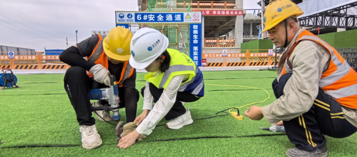 接到集團籌備通知后,交安公司經(jīng)理崔海玲帶領工作小組負責人,多次前往襄陽綜合保稅區(qū)與質(zhì)安環(huán)部負責人、襄陽綜合保稅區(qū)項目經(jīng)理共同商討活動場地選址、舞臺搭設等事宜。前期已完成道旗、基坑護欄和圍擋安裝、懸掛安全宣傳標語、協(xié)調(diào)急救車等準備工作。6月3日下午,交安公司組織全體員工在活動現(xiàn)場,對籌備工作進行最后的檢查與完善,并將活動場地草皮全部鋪設完成。