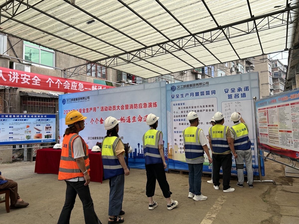 活動(dòng)首先由職工代表傳達(dá)《漢江城建集團(tuán)有限公司關(guān)于印發(fā)2024年“安全生產(chǎn)月”活動(dòng)方案的通知》文件精神,全體員工集中宣誓并在安全承諾簽名墻上簽名承諾。隨后,交安公司各項(xiàng)目負(fù)責(zé)人結(jié)合工作實(shí)際,就施工現(xiàn)場(chǎng)如何做好安全施工,預(yù)防各類事故發(fā)生,進(jìn)行交流分享。