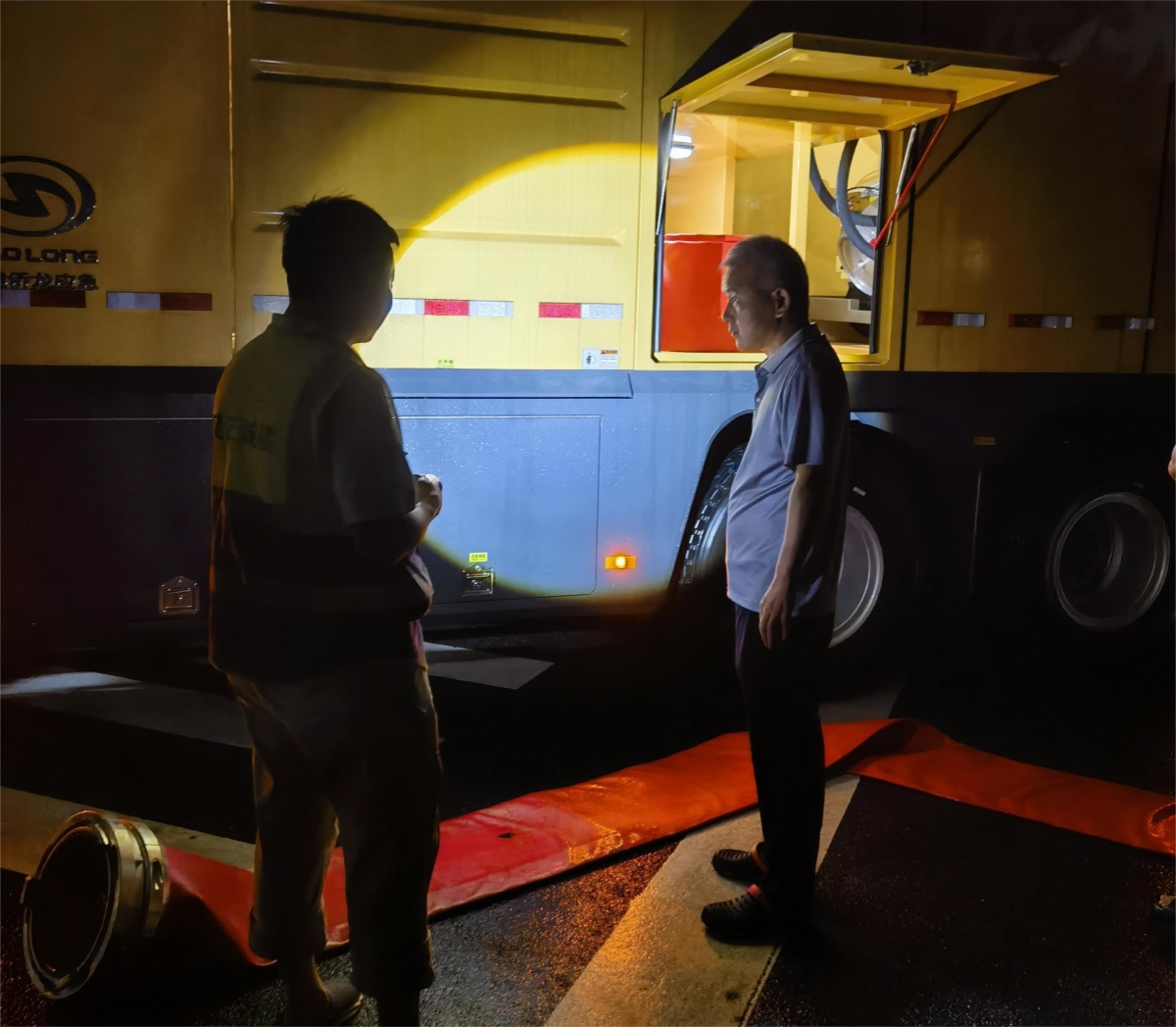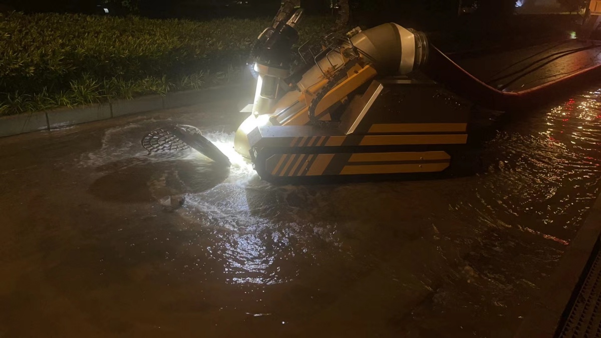 7月初,市政公司便加強(qiáng)了對(duì)各施工區(qū)域的雨情、水清和汛情變化的跟蹤,提前制訂抽排方案,安排抽排物資,密集監(jiān)視水位情況,設(shè)置警戒區(qū)域,當(dāng)水位接近閾值時(shí)啟動(dòng)防汛應(yīng)急預(yù)案。7月13日至今,市政公司出動(dòng)搶險(xiǎn)作業(yè)人員40余人,調(diào)配水泵10臺(tái)、抽水車(chē)4臺(tái)、裝載機(jī)3臺(tái)、防汛車(chē)3臺(tái),電磁泵2臺(tái)等,在中航大道、中原西路、富康大道等多個(gè)點(diǎn)位開(kāi)展24小時(shí)不間斷抽排水作業(yè)。班子成員帶頭輪流值守,現(xiàn)場(chǎng)分配人力物力,組建臨時(shí)搶險(xiǎn)巡查工作群,實(shí)時(shí)匯報(bào)巡查排查的隱患情況。