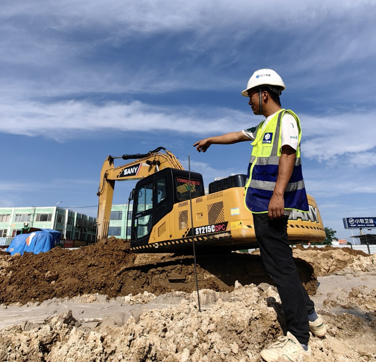 在建筑垃圾循環(huán)回收再利用項(xiàng)目現(xiàn)場(chǎng),管理人員頭頂烈日,腳踏熱浪,井然有序地開展廠區(qū)道路及管網(wǎng)施工,全力以赴推動(dòng)工程建設(shè)。1號(hào)廠房東南側(cè)道路混凝土面層澆筑前,項(xiàng)目經(jīng)理行走在各個(gè)作業(yè)面,密切關(guān)注著施工進(jìn)度和質(zhì)量,嚴(yán)格把控每一道環(huán)節(jié)。高溫天氣,混凝土罐車出料更要注意坍落度,每次開盤,管理人員既憑數(shù)據(jù),也憑經(jīng)驗(yàn)對(duì)每車混凝土進(jìn)行把關(guān),直到面層收光完成后及時(shí)安排養(yǎng)護(hù)覆蓋。
