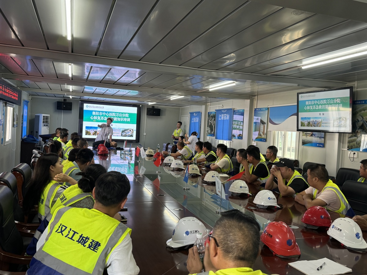 為提高對突發(fā)情況和意外事件的自救和互救能力,進(jìn)一步增強(qiáng)施工現(xiàn)場一線人員的自我保護(hù)意識,8月1日,湖北文理學(xué)院遷建項(xiàng)目邀請襄陽市中心醫(yī)院萬山分院急診科醫(yī)生到施工一線,開展心肺復(fù)蘇急救技能知識培訓(xùn)。