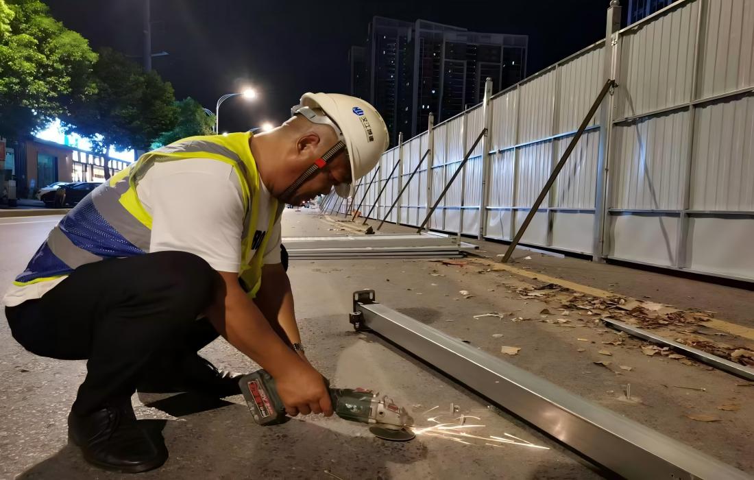 拆除圍擋是保障后續(xù)施工和周邊交通順暢的重要環(huán)節(jié)。為了減少對市民出行和周邊環(huán)境的影響,施工團隊決定在夜間加班作業(yè)。