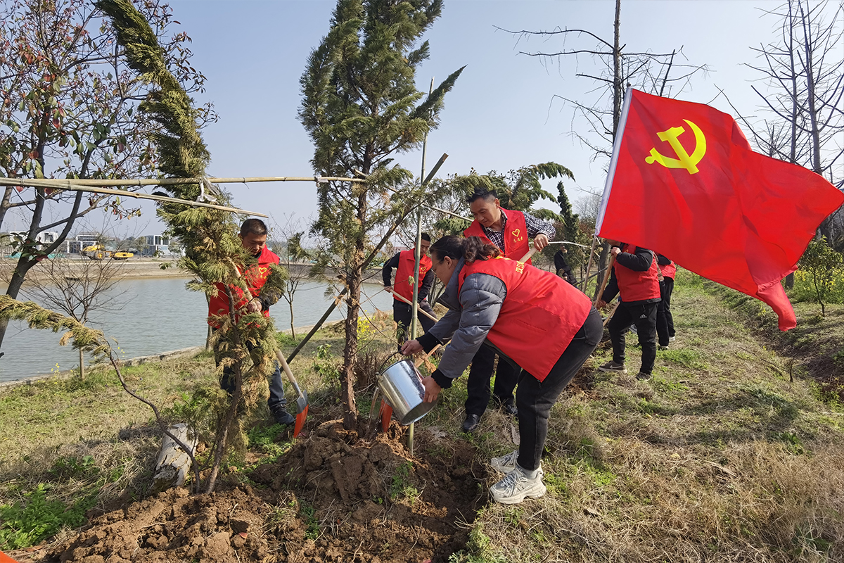 新材料公司、第三分公司:3月10日下午,新材料公司黨支部聯(lián)合漢江城建第三分公司黨支部組織全體黨員干部、青年志愿者在廠區(qū)內開展“黨旗引領生態(tài)綠,植樹共筑家園美”活動,以實際行動為家園添綠,讓黨性教育在生態(tài)實踐中落地生根;顒蝇F(xiàn)場,大家分工明確、配合默契,揮鍬鏟土、扶苗定根、培土圍堰、提水澆灌,每一個環(huán)節(jié)都認真細致,歡聲笑語間,新栽苗木錯落有致、迎風挺立,與飄揚的黨旗、忙碌的身影相映成景。此次植樹活動以“黨建+生態(tài)”的創(chuàng)新模式,將義務植樹與黨性教育深度融合,活動期間共栽種各類苗木20余株。黨員干部在勞動實踐中錘煉了黨性、提升了素養(yǎng),讓“綠水青山就是金山銀山”的理念更加深入人心。