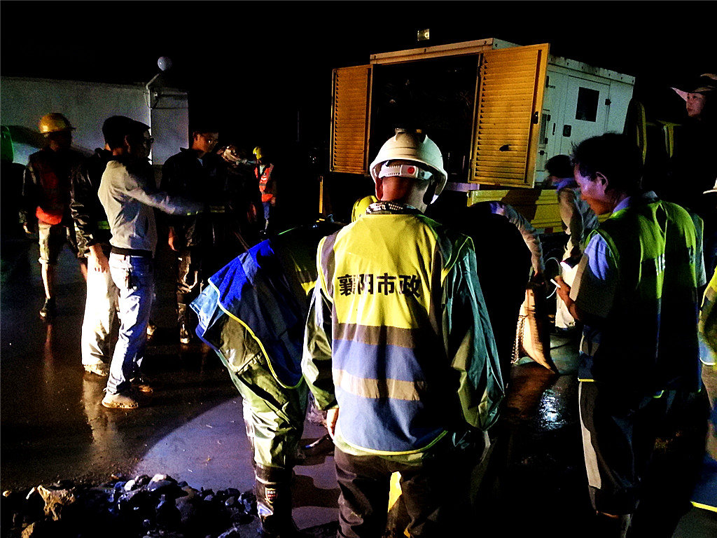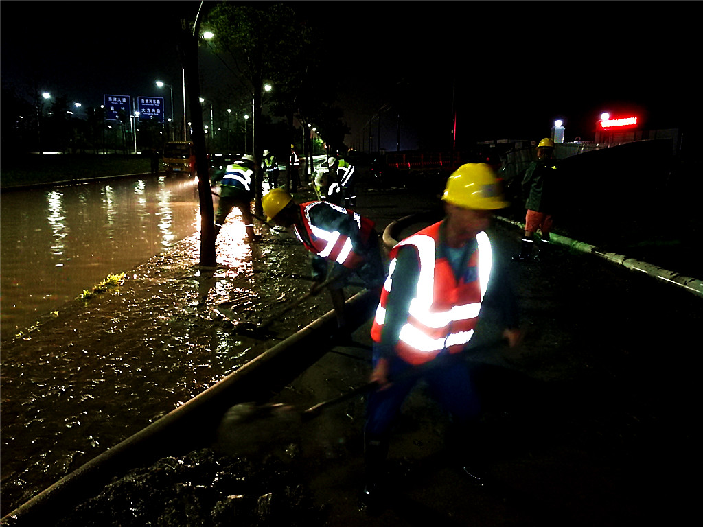 在2020年6月20日晚,受暴雨影響,襄陽市東津新區(qū)內(nèi)環(huán)南線華僑城段積水嚴(yán)重,造成華僑城、機(jī)場(chǎng)、高鐵站通往中心城區(qū)的重要交通樞紐中斷。漢江城建接到東津新區(qū)管委會(huì)通知后連夜搶險(xiǎn),當(dāng)日凌晨,路面積水退去,道路交通恢復(fù)正常。