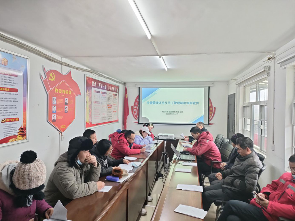 為建立長(zhǎng)效管理機(jī)制,健全和完善內(nèi)控管理制度,規(guī)范各級(jí)、各類人員的工作標(biāo)準(zhǔn),明確崗位職責(zé),提高工作質(zhì)量和效率,增強(qiáng)公司活力,調(diào)動(dòng)員工的工作積極性,新材料公司于1月24日,組織全體員工召開了“質(zhì)量管理體系及員工管理制度細(xì)則”宣貫會(huì),并同時(shí)開展了新材料公司員工內(nèi)部年終互評(píng)考核。會(huì)議由新材料公司書記孔慶銳主持,新材料公司全體員工參加。