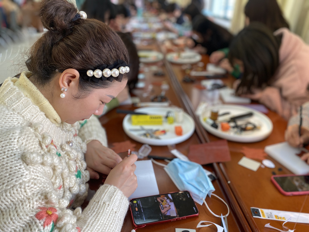 活動現(xiàn)場歡聲笑語,女職工們興致盎然,邊看邊學(xué),經(jīng)過大家的巧手裁剪、打磨制作,一只只萌噠噠的“皮墩墩”在大家手中誕生。大家相互分享著自己動手制作的樂趣和感悟,氣氛美麗又溫馨。
