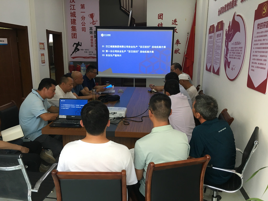 為貫徹落實(shí)漢江城建《安全生產(chǎn)“百日雙掃”活動(dòng)實(shí)施方案》。8月5日,一公司召開(kāi)“百日雙掃”工作推進(jìn)會(huì),會(huì)議由一公司經(jīng)理王強(qiáng)主持,副經(jīng)理鄒新建、馬朝剛,各項(xiàng)目負(fù)責(zé)人和安全員參加會(huì)議。