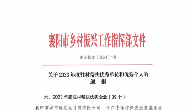 近日,襄陽市鄉(xiāng)村振興工作指揮部辦公室發(fā)布了《關(guān)于2023年度駐村幫扶優(yōu)秀單位和優(yōu)秀個人的通報》,漢江城建集團(tuán)駐村工作隊?wèi){借優(yōu)