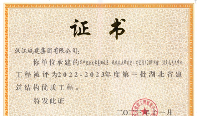 華中農業(yè)大學襄陽校區(qū)(現(xiàn)代農業(yè)研究院)建設項目榮獲“湖北省建筑結構優(yōu)質工程”稱號