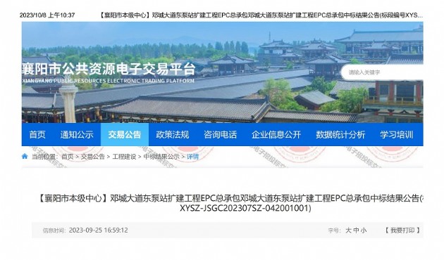 9月25日,漢江城建集團(tuán)有限公司牽頭中標(biāo)鄧城大道東泵站擴(kuò)建工程EPC總承包項(xiàng)目(以下稱“本項(xiàng)目”),中標(biāo)金額15380.32