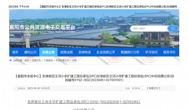 6月6日,漢江城建集團有限公司牽頭中標東津新區(qū)王河小學擴建工程總承包(EPC)項目,中標金額3590.57萬元,建設工期300天。該項目位
