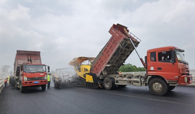 南漳發(fā)展大道改建工程SMA面層順利完成試驗(yàn)段鋪筑