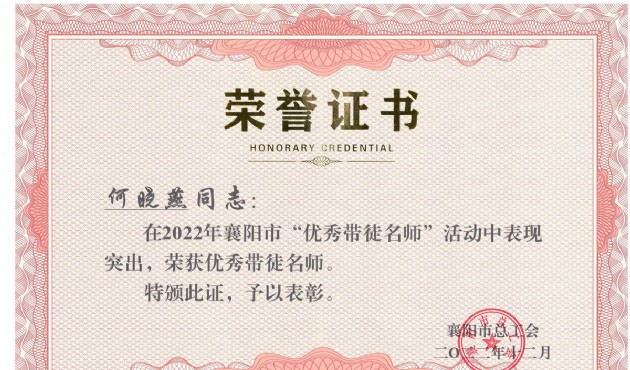近日,襄陽(yáng)市總工會(huì)印發(fā)《關(guān)于命名2022年市級(jí)職工(勞模、工匠)創(chuàng)新工作室、產(chǎn)業(yè)工人培訓(xùn)基地暨表?yè)P(yáng)優(yōu)秀帶徒名師、學(xué)習(xí)型職工的