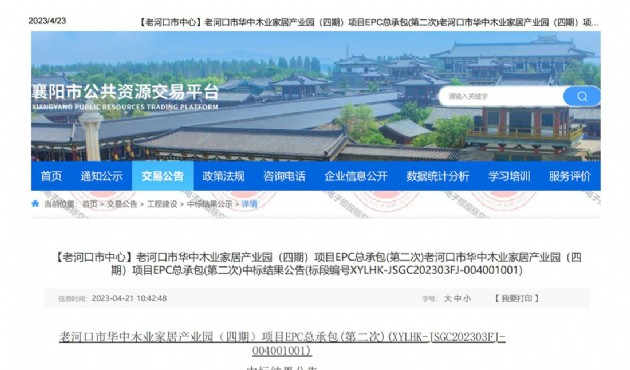 4月21日,漢江城建牽頭中標(biāo)老河口市華中木業(yè)家居產(chǎn)業(yè)園(四期)項目EPC總承包項目(以下稱本項目),中標(biāo)金額52799.25萬元,建設(shè)