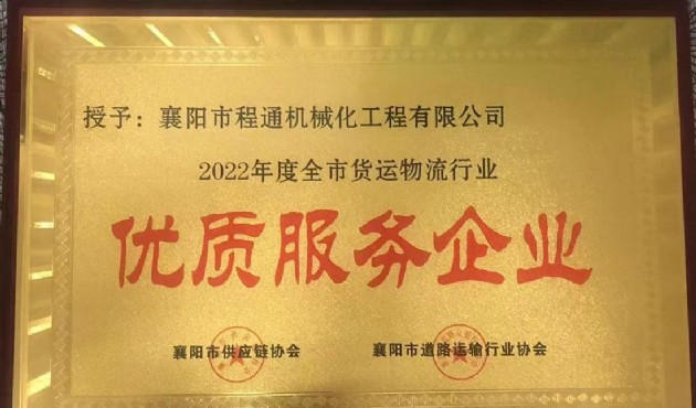 襄陽市程通機械化工程有限公司 榮獲 “襄陽市貨運物流行業(yè)優(yōu)質(zhì)服務(wù)企業(yè)”