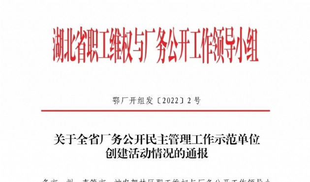 近日,湖北省職工維權(quán)與廠務公開工作領導小組發(fā)布《關于全省廠務公開民主管理工作示范單位創(chuàng)建活動情況的通報》,漢江城建獲評全