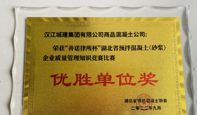 近日,漢江城建商品混凝土公司在湖北省預(yù)拌混凝土協(xié)會舉辦的2022年“善諾律所杯”湖北省預(yù)拌混凝土(砂漿)企業(yè)質(zhì)量管