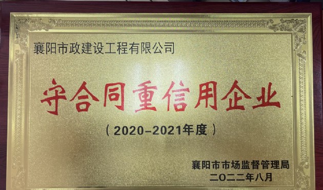襄陽(yáng)市政建設(shè)工程有限公司獲“2020-2021年度守合同重信用企業(yè)”榮譽(yù)稱號(hào)