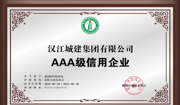近日,襄陽(yáng)市建筑業(yè)協(xié)會(huì)公布2022年度第一批襄陽(yáng)市建筑業(yè)企業(yè)信用評(píng)級(jí)結(jié)果,漢江城建的信用被評(píng)定為最高等級(jí)AAA級(jí)。該信用評(píng)級(jí)是對(duì)