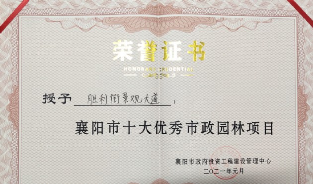 漢江城建承建的勝利街景觀大道榮獲襄陽市十大優(yōu)秀市政園林項目