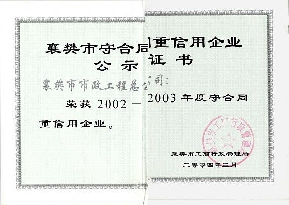 2003年襄樊市守合同重信用企業(yè)