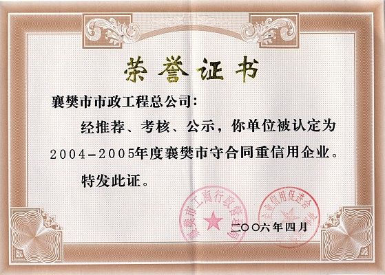 2004-2005襄樊市守合同重信用企業(yè)