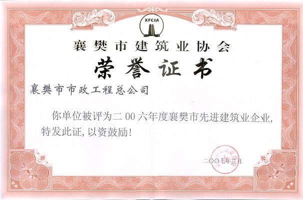 2006年襄樊市先進(jìn)建筑業(yè)企業(yè)