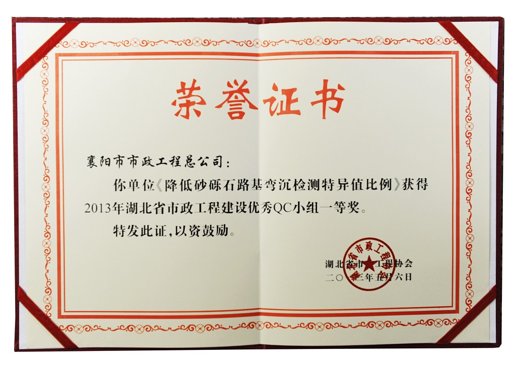 2013砂礫石路基彎沉檢測湖北省市政QC一等獎