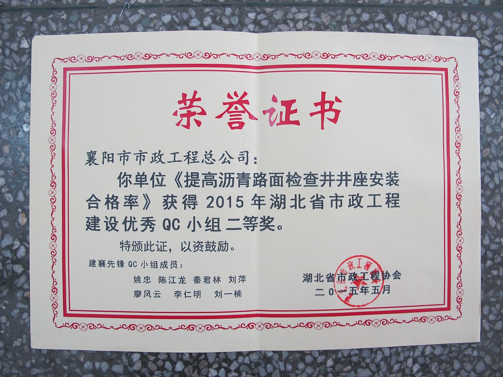 2015瀝青路面井座安裝合格率湖北省優(yōu)秀QC二等獎(jiǎng)