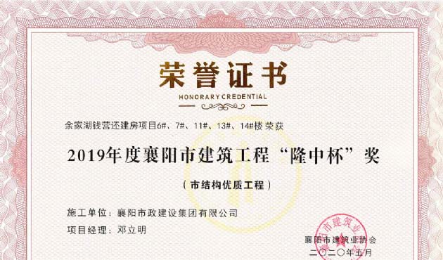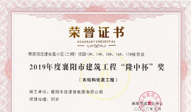 2019年度襄陽(yáng)市建筑工程“隆中杯”(黃家灣)
