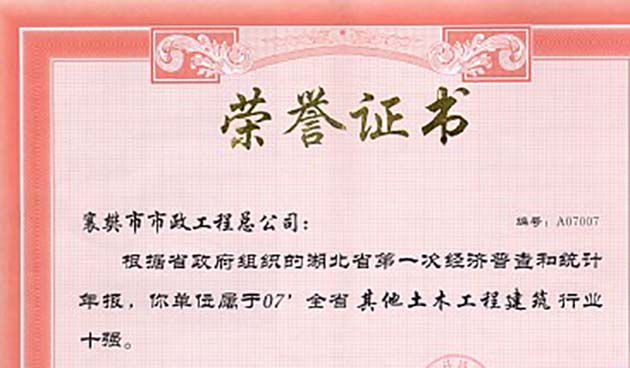 2007年湖北省先進(jìn)市政企業(yè)