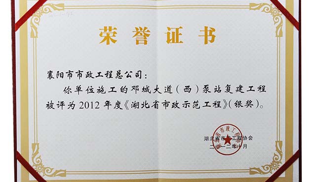 2012鄧城大道工程湖北省市政示范工程銀獎