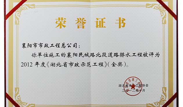 2012民城路工程湖北省市政示范工程金獎