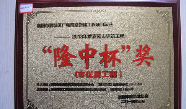 2012樊宛路工程襄陽市“隆中杯”獎杯
