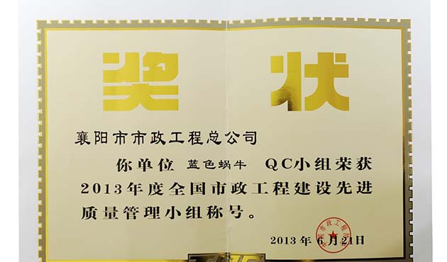 2013全國市政先進(jìn)質(zhì)量管理小組稱號