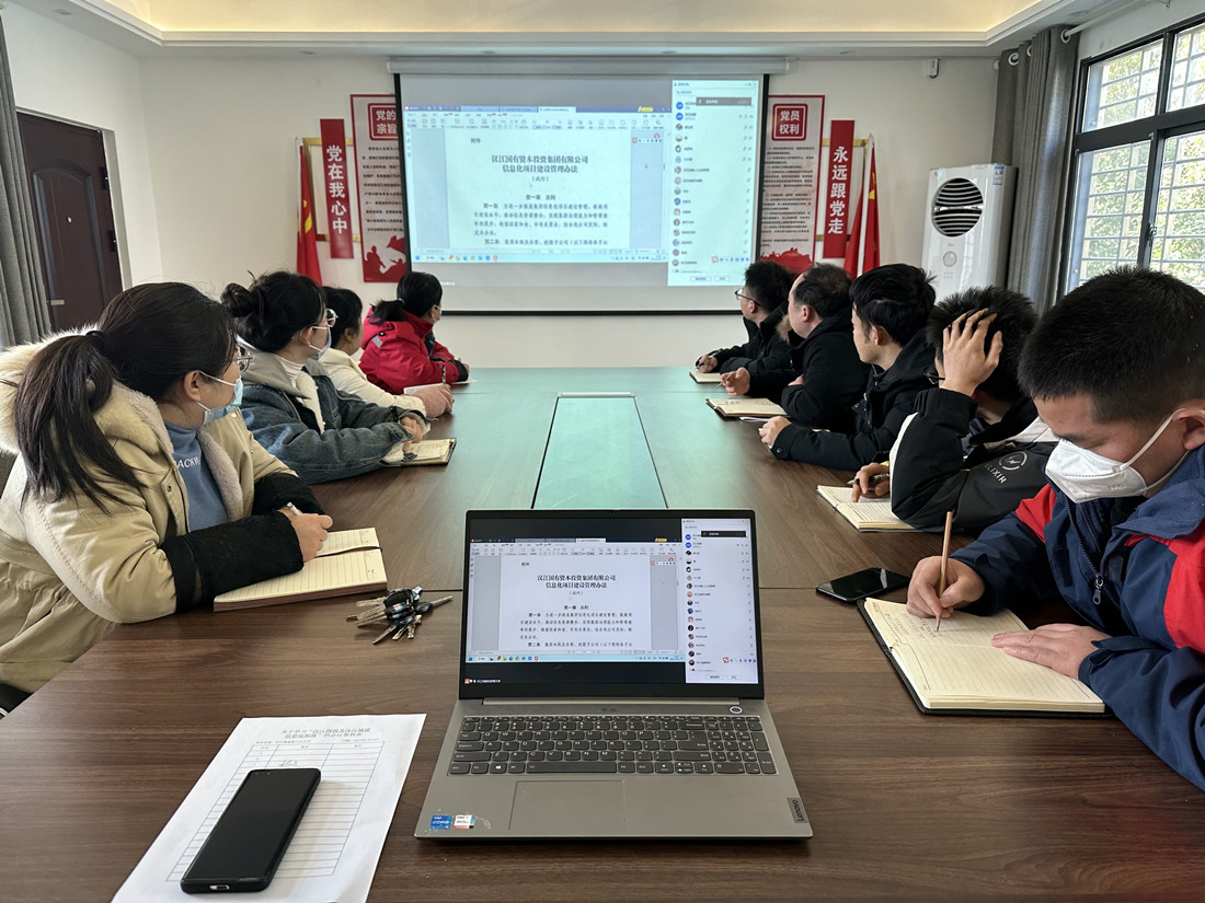 會(huì)上分別對(duì)《漢江國投信息化項(xiàng)目建設(shè)管理辦法(試行)》《漢江國投專屬云平臺(tái)運(yùn)維管理辦法(試行)》《襄陽市政建設(shè)集團(tuán)有限公司網(wǎng)站管理辦法》及《漢江城建集團(tuán)有限公司計(jì)算機(jī)及網(wǎng)絡(luò)安全管理制度》等辦法、制度逐一進(jìn)行了全文解讀。綜合部從集團(tuán)信息化管理現(xiàn)狀出發(fā),詳細(xì)講解了集團(tuán)公司公司對(duì)信息化管理的組織、運(yùn)行及責(zé)任。