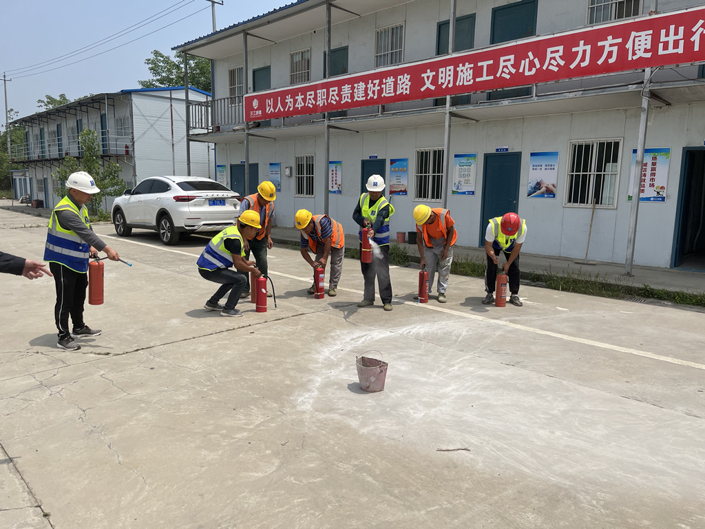 在實操環(huán)節(jié),安全員對現(xiàn)場各類消防器材的使用進行了介紹,對滅火器1提、2拔、3瞄、4壓的使用方法進行了詳細(xì)的實操演練,確保讓每一個施工人員都能正確使用滅火器,達到了預(yù)期的效果。