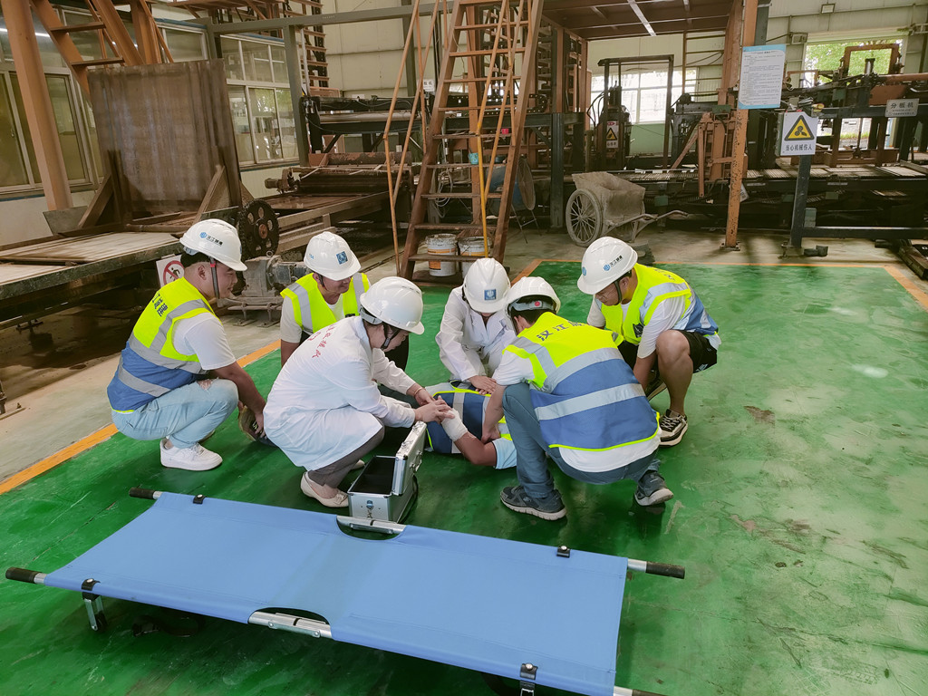 此次演練采用場景設(shè)置、實戰(zhàn)參演等方式進行。演練現(xiàn)場設(shè)在新材料公司制磚車間,模擬在設(shè)備維修過程中,現(xiàn)場作業(yè)人員不慎從平臺墜落。“不好啦,有人掉下來了!”隨著一聲高呼,應(yīng)急演練拉開序幕。在高空墜落事故發(fā)生后,現(xiàn)場安全管理人員聽到呼救后,迅速查看傷者情況,同時打電話報告經(jīng)理,得到請示后,立即啟動了《高空墜落事故應(yīng)急救援預(yù)案》,同時向120請求救援。在應(yīng)急預(yù)案領(lǐng)導(dǎo)小組組長統(tǒng)一指揮下,協(xié)調(diào)組織應(yīng)急救援組、警戒保衛(wèi)組、醫(yī)療救援組、通訊聯(lián)絡(luò)組齊奔現(xiàn)場,各組各司其職,演練現(xiàn)場井然有序、配合緊密,最后應(yīng)急救援車輛和醫(yī)療人員將傷員送往醫(yī)院,保證了傷者第一時間得到正確、有效救治,消除了事故影響,及時恢復(fù)了生產(chǎn)。演練結(jié)束后,還及時組織相關(guān)人員召開了總結(jié)會。
