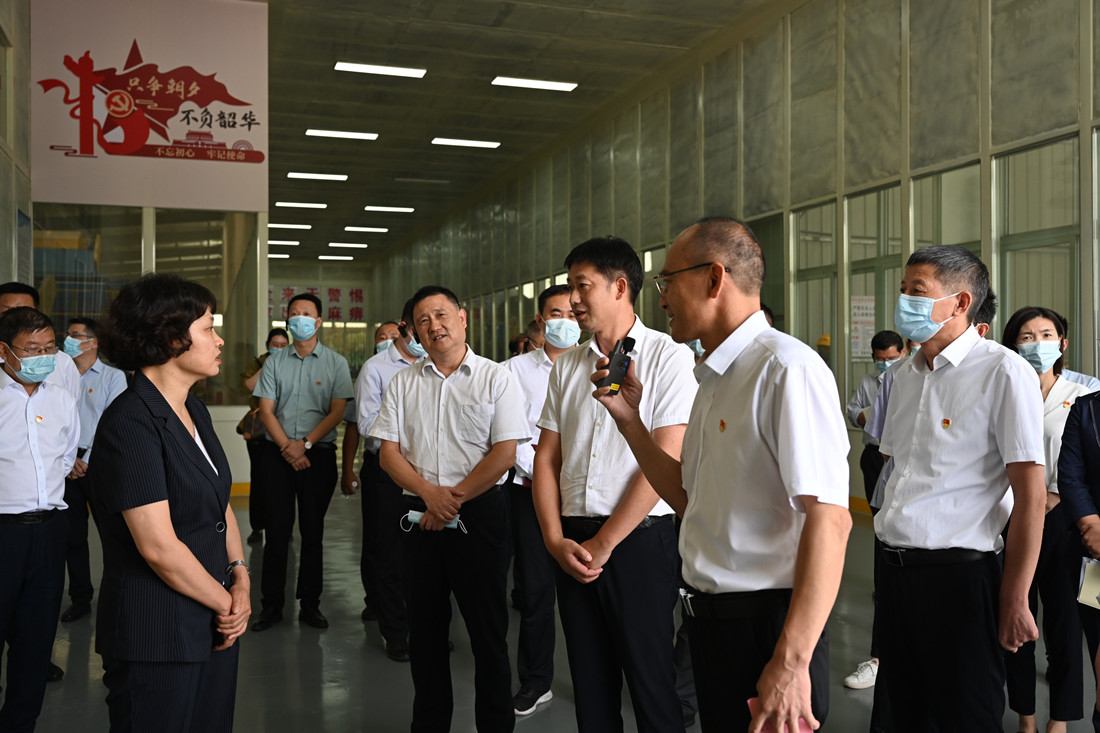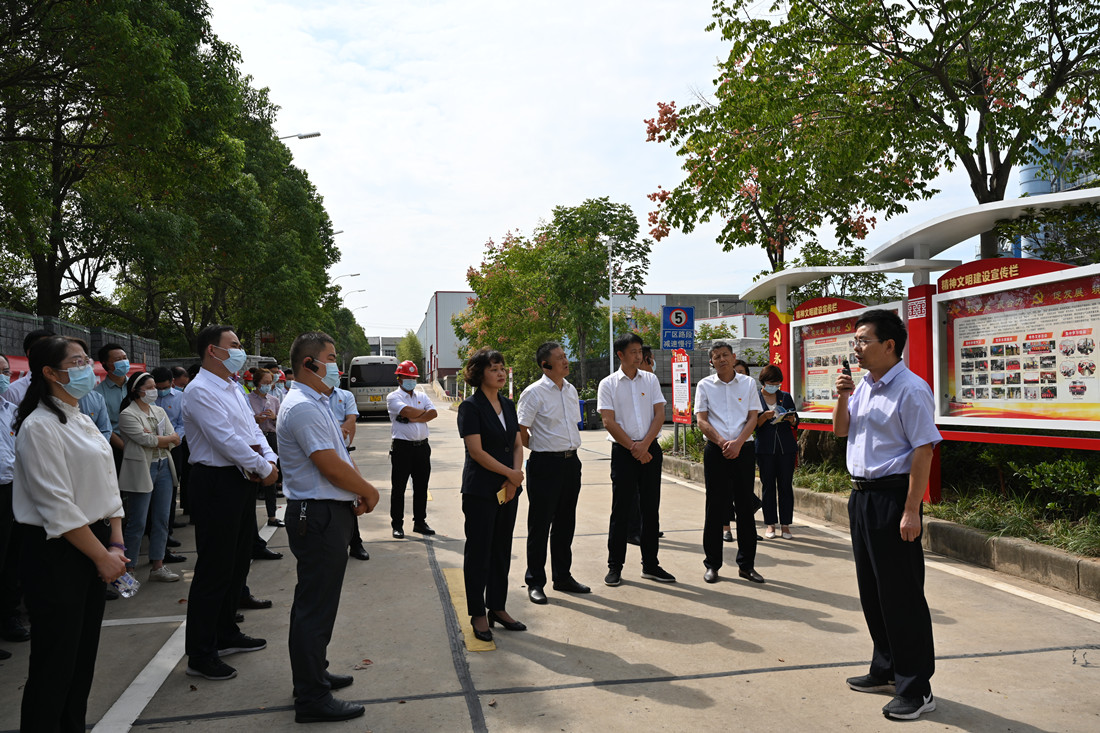 9月21日下午,市委組織部副部長、市委老干部局局長,市委兩新工委書記劉寶霞帶領(lǐng)全市國有企業(yè)觀摩團(tuán)一行40余人,來到漢江城建“黨建示范點(diǎn)”新材料公司進(jìn)行現(xiàn)場觀摩,漢江國投黨委副書記、董事黃開均陪同觀摩。在新材料公司循環(huán)再利用車間前,漢江城建集團(tuán)黨委書記、董事長盧國宏為觀摩團(tuán)講解和匯報(bào)了集團(tuán)黨建工作情況。近年來,漢江城建黨委聚焦黨建引領(lǐng),堅(jiān)持“特色、創(chuàng)新、精品”的黨建思路,深入開展黨建示范點(diǎn)創(chuàng)建、“紅旗黨支部”創(chuàng)建等活動(dòng),構(gòu)筑一個(gè)項(xiàng)目一個(gè)基地、一個(gè)支部一個(gè)堡壘、一個(gè)黨員一面旗幟的“三個(gè)一”特色黨建品牌格局,以高質(zhì)量黨建推動(dòng)企業(yè)高質(zhì)量發(fā)展。新材料公司黨支部書記孔慶銳圍繞推進(jìn)支部“五個(gè)標(biāo)準(zhǔn)化”建設(shè),找準(zhǔn)黨建與生產(chǎn)的“結(jié)合點(diǎn)”,開展“黨建+節(jié)能減排”、“黨建+安全生產(chǎn)”、“黨建+產(chǎn)品研發(fā)”等工作情況進(jìn)行了詳細(xì)匯報(bào),為大家介紹了新材料公司充分發(fā)揮黨員示范引領(lǐng)的作用,開展黨員一線“亮身份”、“亮承諾”系列活動(dòng)的相關(guān)做法。就如何堅(jiān)持黨建引領(lǐng)綠色發(fā)展,將黨建“紅色力量”轉(zhuǎn)化為生態(tài)保護(hù)發(fā)展“綠色引擎”,推動(dòng)黨建工作與業(yè)務(wù)工作齊頭并進(jìn)的工作情況與大家進(jìn)行了交流。