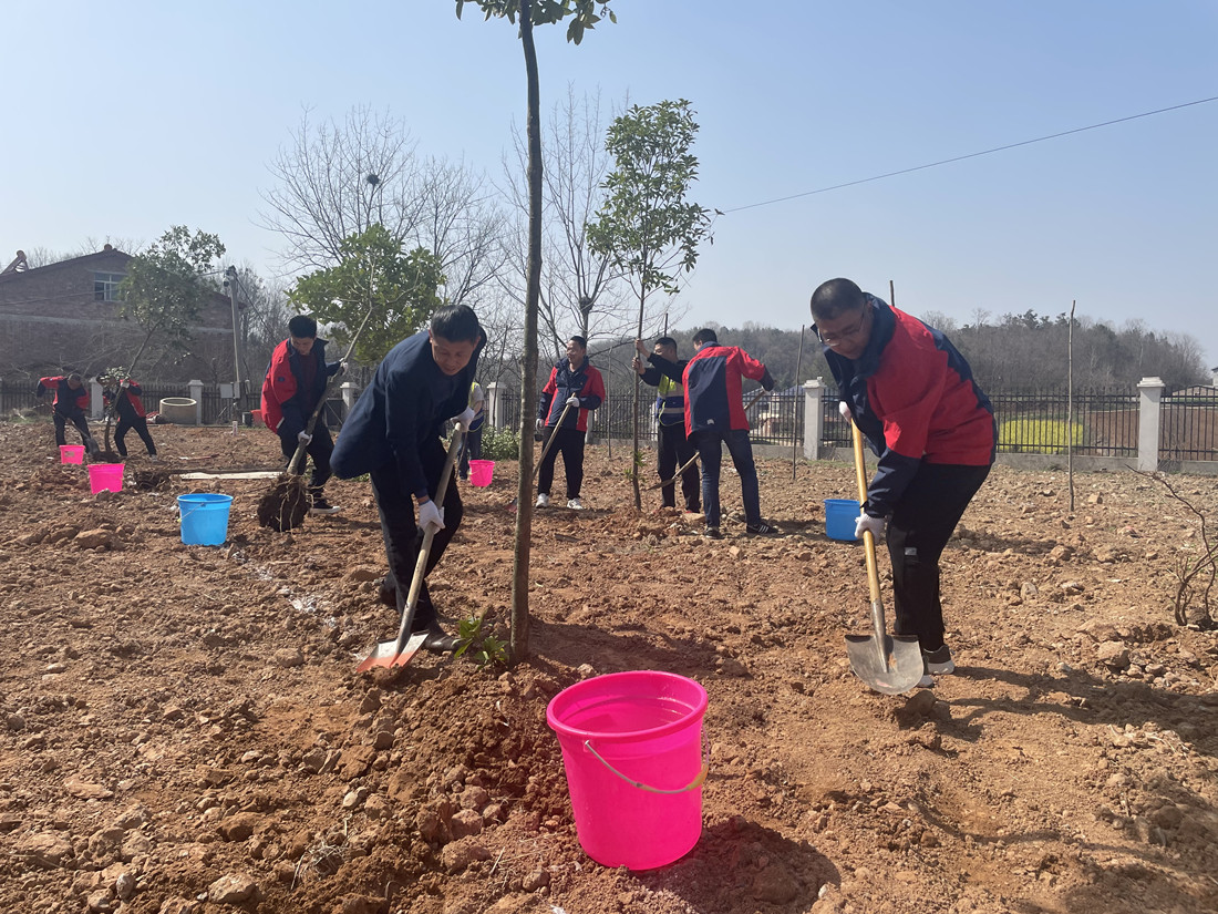 為深入學(xué)習(xí)貫徹黨的二十大精神,以實際行動踐行習(xí)近平生態(tài)文明思想,提升黨員綠色生態(tài)意識,營造“植綠、護(hù)綠、愛綠”的良好氛圍,在第45個全民義務(wù)植樹節(jié)來臨之際,漢江城建集團(tuán)第二分公司黨支部在南漳縣發(fā)展大道改建工程項目部開展義務(wù)植樹活動,活動邀請了漢江城建黨委副書記、董事姚忠、黨群部部長王明君共同參與其中。