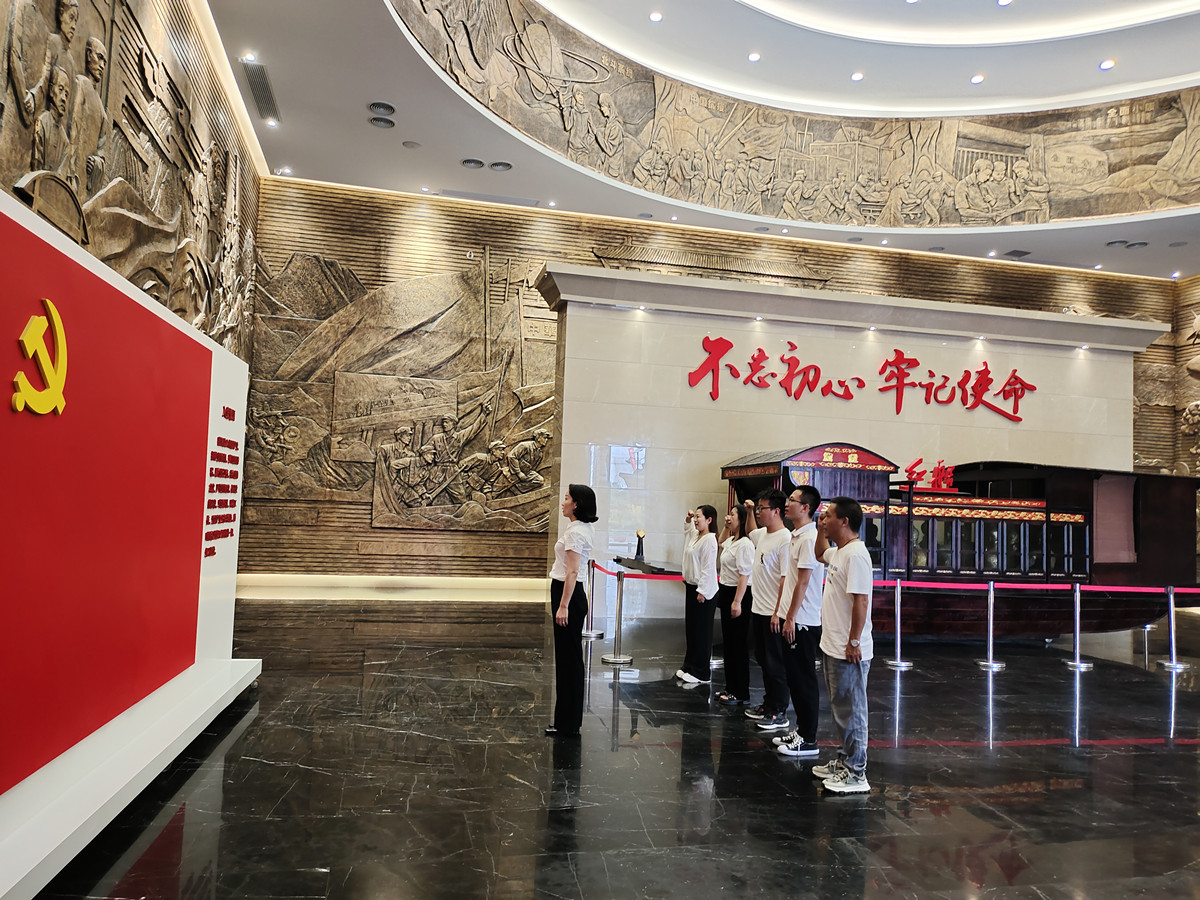 活動伊始,全體黨員在黨支部書記崔海玲同志的帶領下齊唱國歌、重溫入黨誓詞,錚錚誓言,體現(xiàn)了黨員同志們對中國共產(chǎn)黨的無限忠誠,堅定了入黨使命,奮斗初心。隨后,在講解員的引導下,全體黨員干部先后參觀了“不忘初心、牢記使命”主題教育基地的八大主題展館,全體黨員干部職工通過現(xiàn)場互動、觸屏體驗、討論交流等多種形式,沉浸其中,感悟中國共產(chǎn)黨的初心和使命,汲取偉大建黨精神力量。
