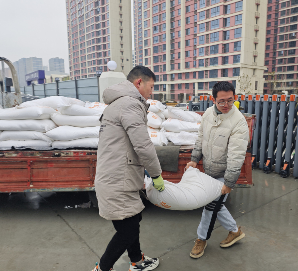 交安公司黨支部迅速響應(yīng)“以雪為令、聞雪而動(dòng)”,緊急調(diào)配工業(yè)鹽等融雪物資,由黨支部書記崔海玲同志親自帶領(lǐng)黨員突擊隊(duì)充分發(fā)揮黨員先鋒模范作用,及時(shí)搬運(yùn)物資,按需求第一時(shí)間將物資送到了項(xiàng)目施工現(xiàn)場(chǎng),這批物資將用于加快融雪的速度,有效緩解因屋頂積雪導(dǎo)致荷載過(guò)大的現(xiàn)象及場(chǎng)地結(jié)冰打滑而產(chǎn)生的安全隱患,保障項(xiàng)目施工現(xiàn)場(chǎng)材料生產(chǎn)運(yùn)輸車輛順利通行。