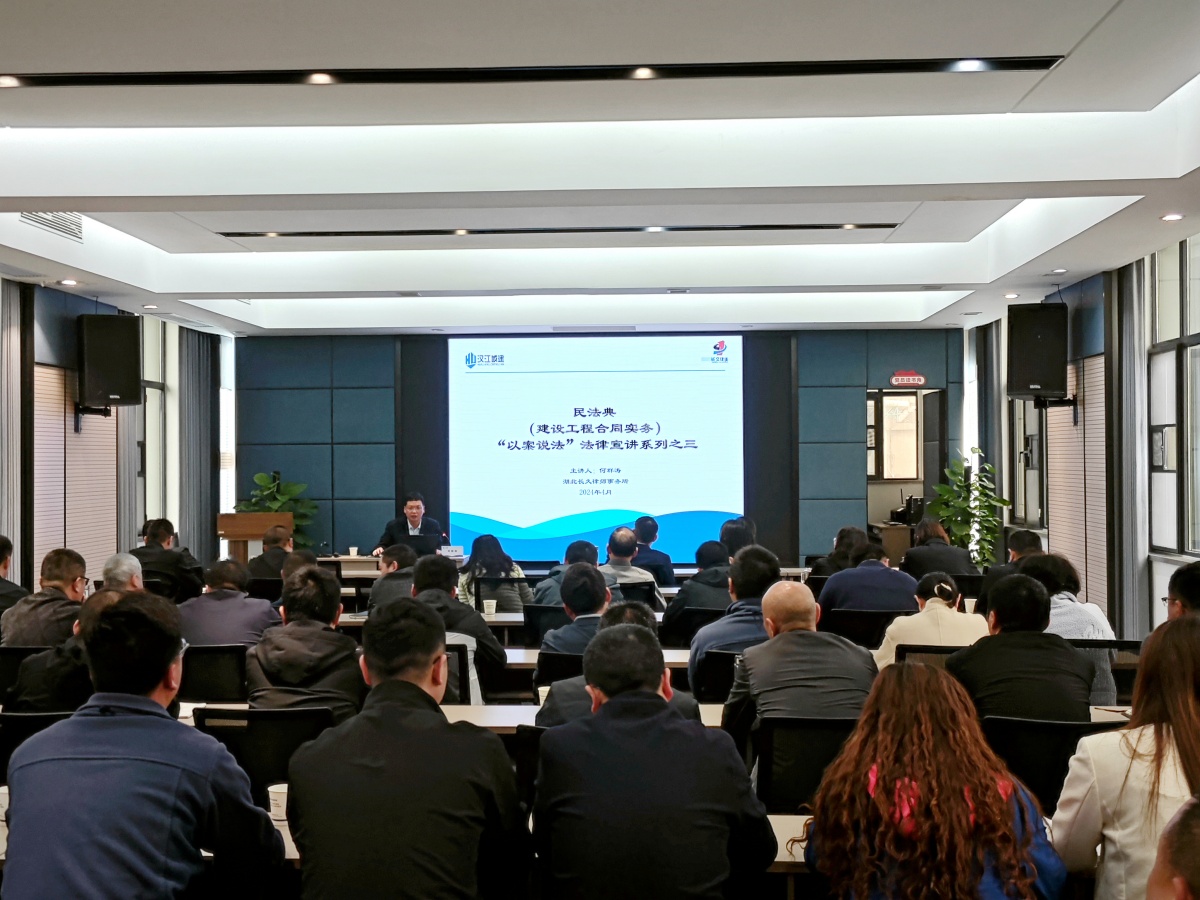 本次培訓特邀湖北長久律師事務所何群濤律師現(xiàn)場授課,整個培訓采用理論與案例相結(jié)合的方式,培訓內(nèi)容基于集團2023年發(fā)生的典型訴訟案例,全面剖析集團未來可能遇到的各種法律風險,指導大家對各類法律風險進行提前防控。最后,漢江城建黨委副書記、董事姚忠表示,要以這次“以案說法”專題培訓為契機,深入學習領會培訓內(nèi)容,切實把各項風險防控工作落到實處。