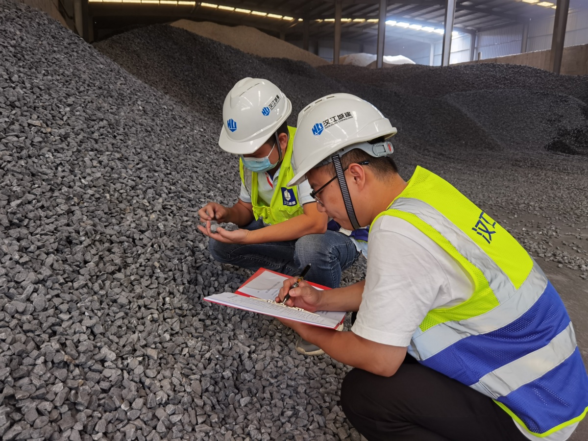 圖為:漢江城建第三分公司對(duì)瀝青原材料及石料規(guī)格進(jìn)行質(zhì)量檢查